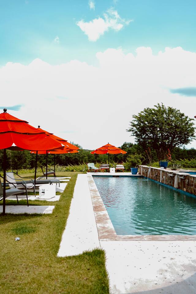 Elegantly appointed with a king size bed and a private bathroom with a Jacuzzi tub. Wake up and watch the sunrise through windows that overlook the Blanc du Bois Vineyard. Surrounded by burgundsy wine colored walls accented with gold and sage green, this Zen room is true to its bane as it provides a tranquil and cozy environment that makes for a perfect getaway for two. Just outside this room is a lovely sitting balcony; one on the inside and one outside.